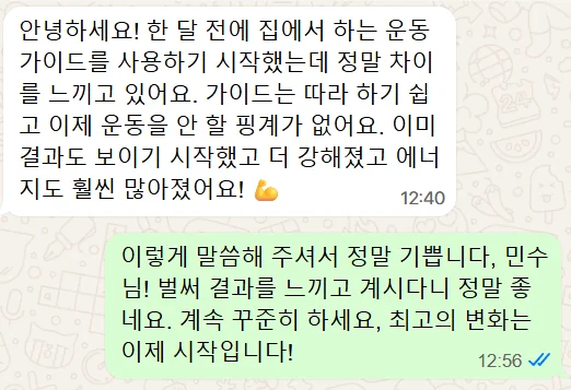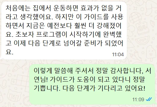 몸이 점점 탄탄해지는 것을 보면서 일상 속에서도 더 큰 자신감과 만족감을 느끼게 됩니다.